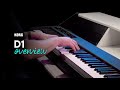 The D1 features a Korg's superb weighted hammer-action 3 (RH3) keybed that reproduces the touch of a grand piano, in which the low notes feel heavier and the action becomes progressively lighter as you move up the keyboard. Another realism-enhancing feature of the D1's Concert Piano and Grand Piano sounds is damper resonance that simulates the spacious resonance produced by sympathetic string vibration when the damper pedal of an acoustic piano is held down. The D1 also features key-off simulation — the decay of the sound when you take your finger off a key. Key-off also factors into the way in which your playing technique affects the string resonance, naturally responding to staccato or legato to further enhance the expressiveness of your performances.